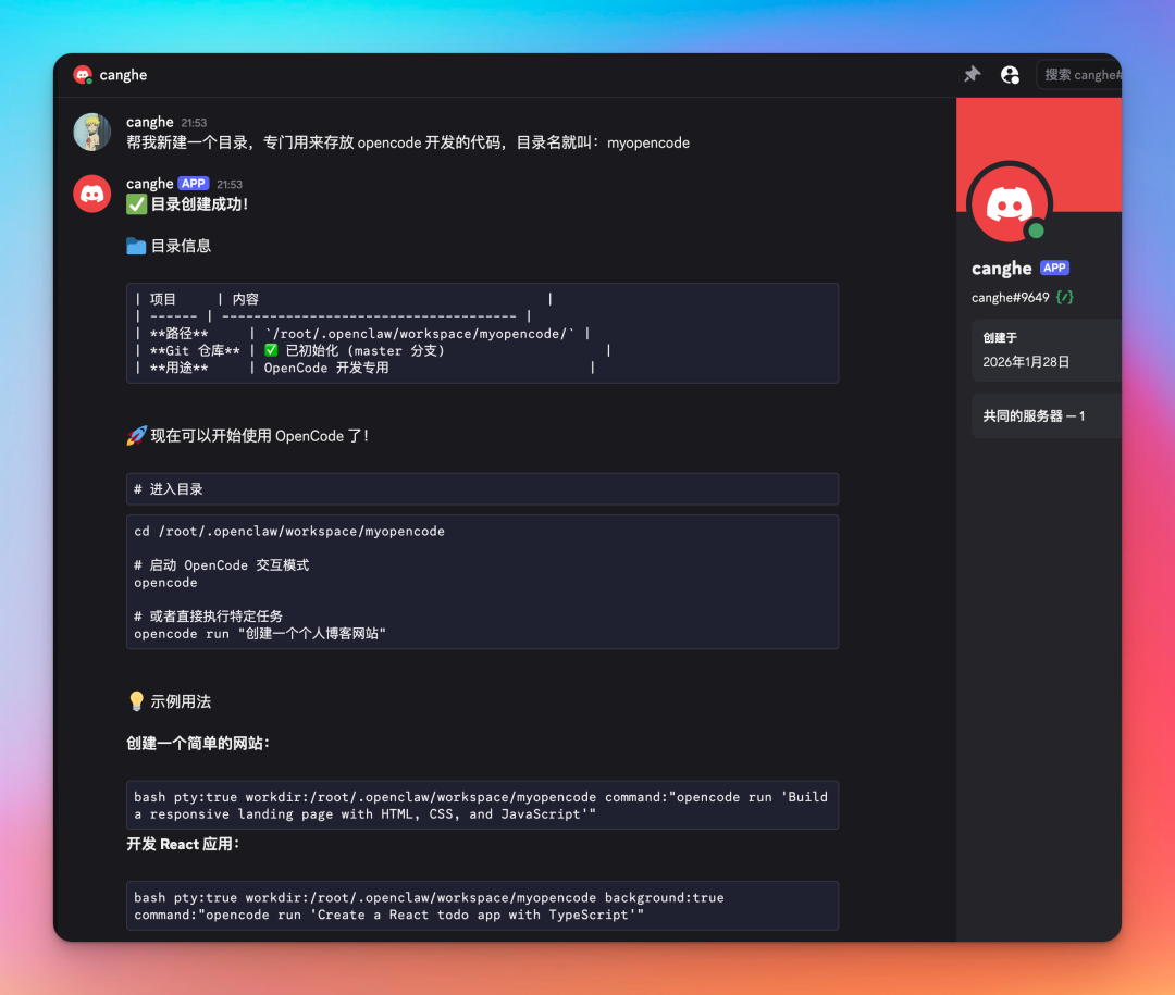 可以看到 Clawdbot(OpenClaw) 会自行去搜索,并且给到我想要的信息,最牛 X 的是,这家伙居然给我推荐了相关的 discord 社区,我靠,真贴心。